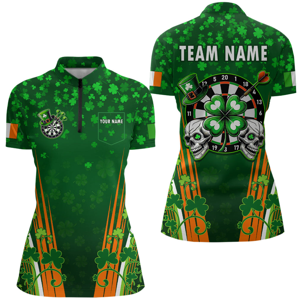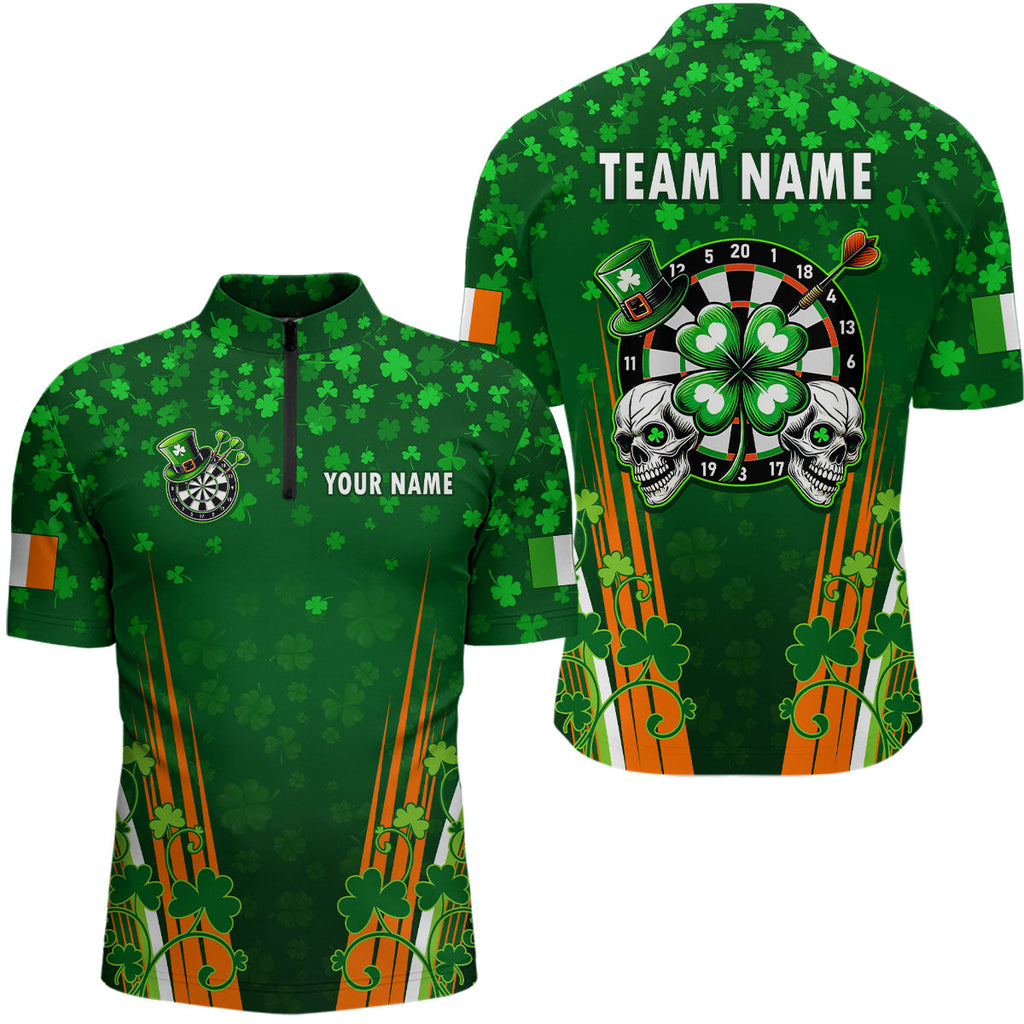 Maxcorners Personalized Luckiest Green Shamrock Skull Dart Shirts For Men Custom St Patrick Day Dart Jerseys
