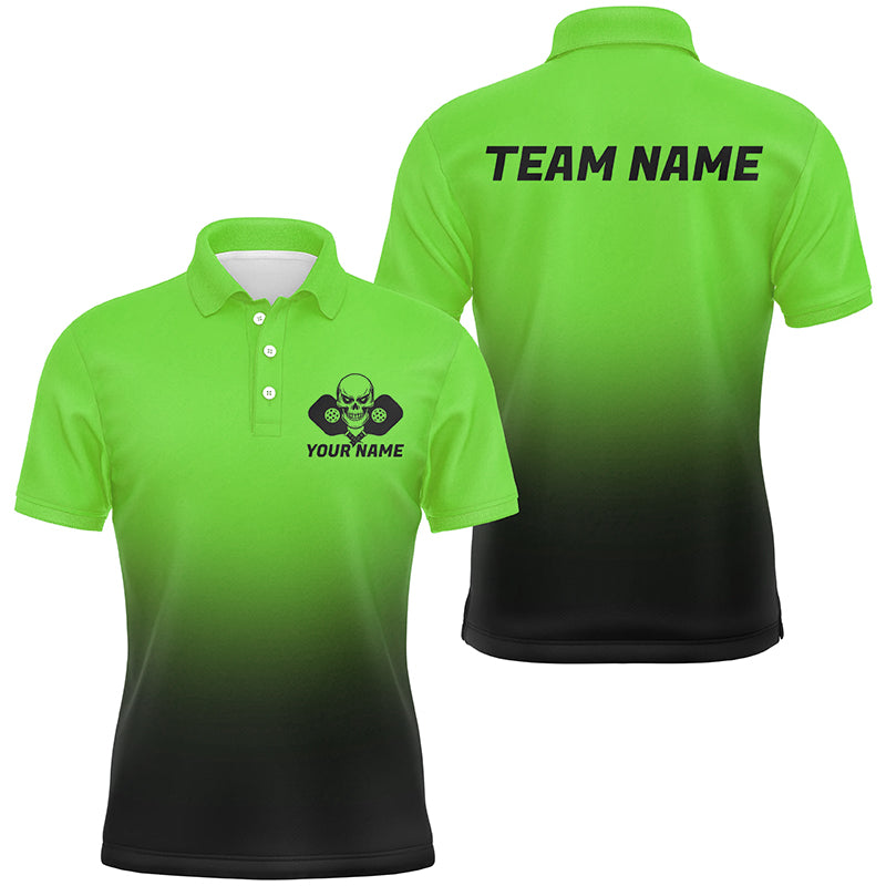 Maxcorners Black And Green Custom Skull Pickleball Shirts For Men, Halloween Pickleball Team Outfit