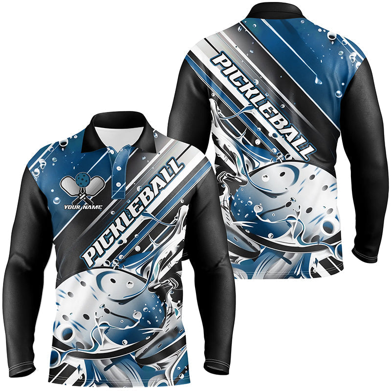Maxcorners Custom Men'S Pickleball Polo Shirts, Black And Blue Pickleball Outfit Pickleball Team Shirts