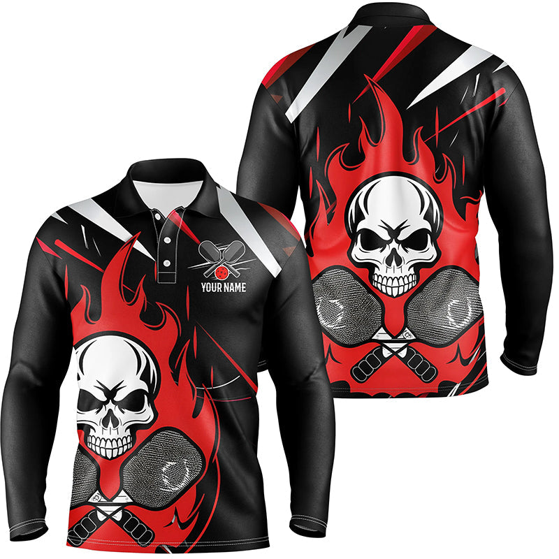 Maxcorners Custom Red Flame Pickleball Shirts For Men, Skull Pickleball Jerseys For Team