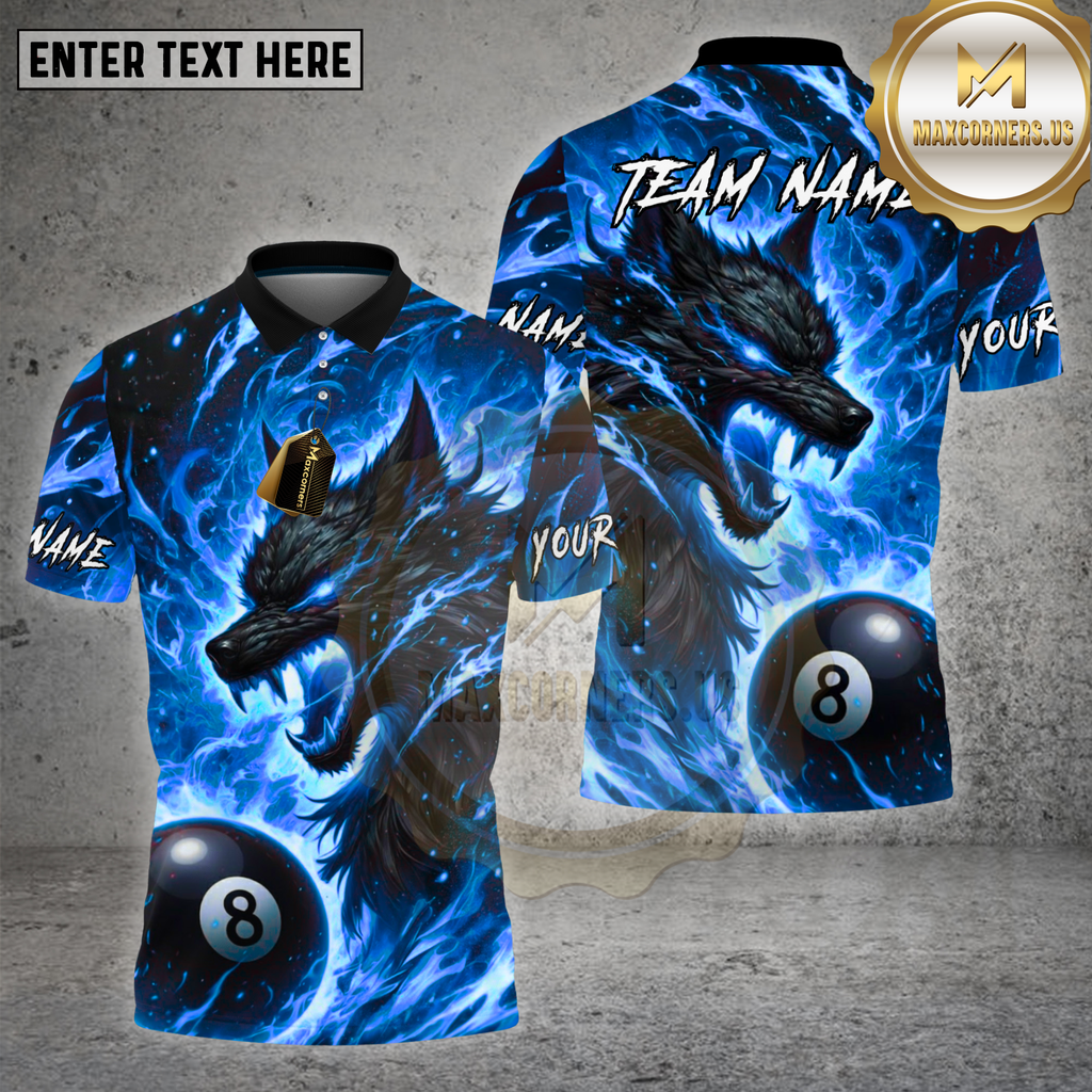 Maxcorners Billiards Fire Wolf Flame Art Design Multi Options Personalized Name Team Name 3D Shirt