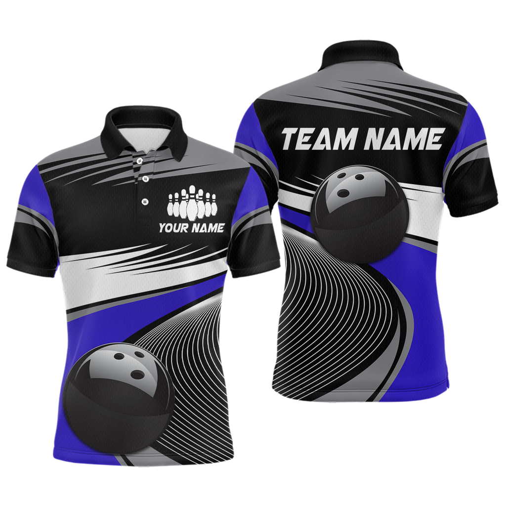 Maxcorners Black&Blue Bowling Shirt for Men Women Team Custom Bowling Polo & 1/4 Zip Shirt TU0506