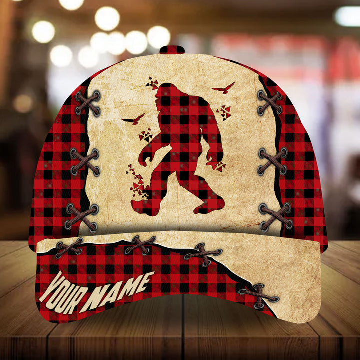 Max Corners Bigfoot Camping Art Leather Pattern 7 Custom 3D Cap