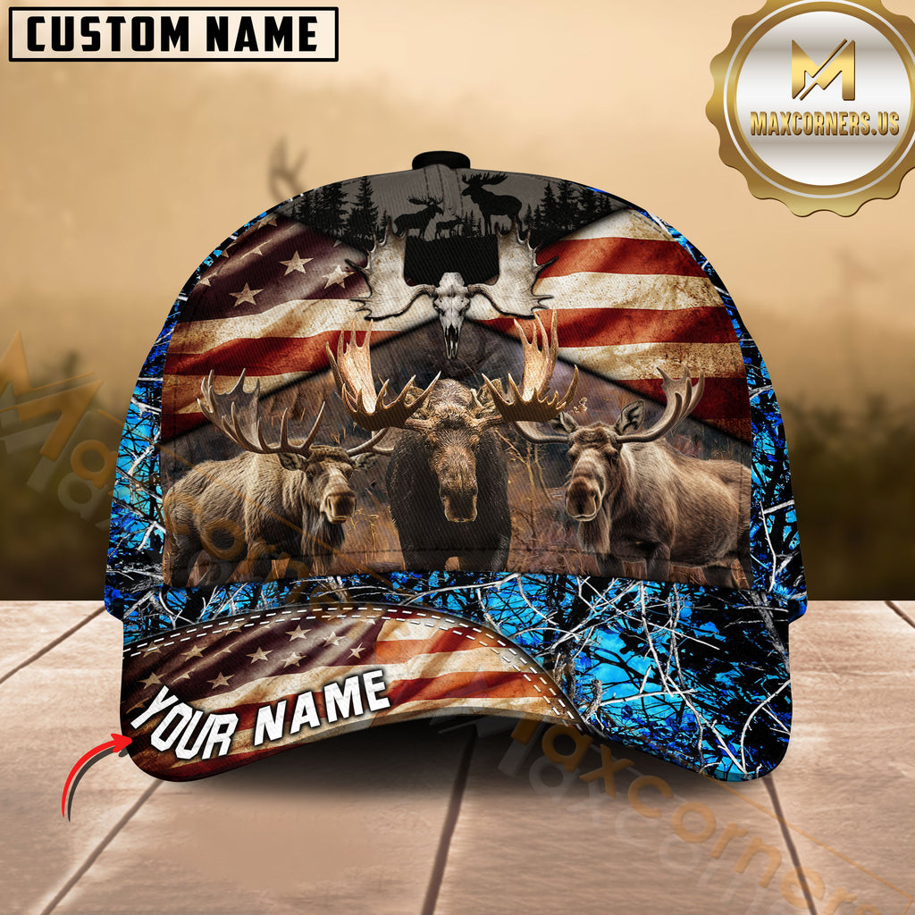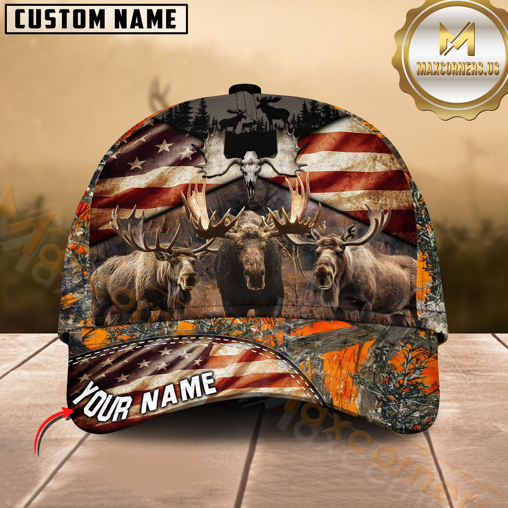 Maxcorners American Flag Moose Hunting Camo Multicolor Options Personalized Name 3D Cap