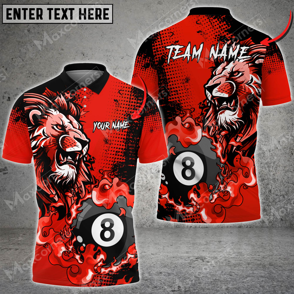 Maxcorners Billiards 8 Ball Fire Lion King Personalized Name, Team Name Unisex Shirt ( 6 Colors )