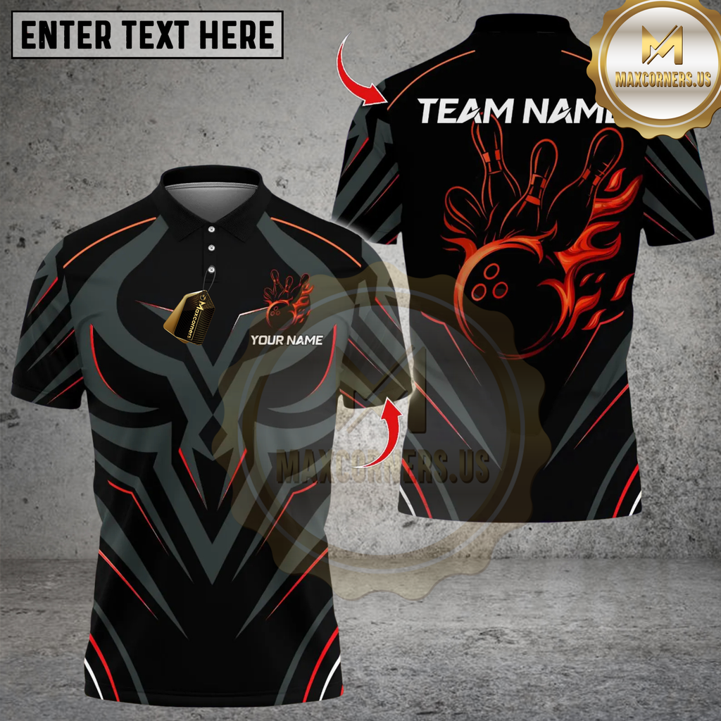 Maxcorners Bowling Golden Royal Flame Multicolor Customized Name, Team Name 3D Shirts
