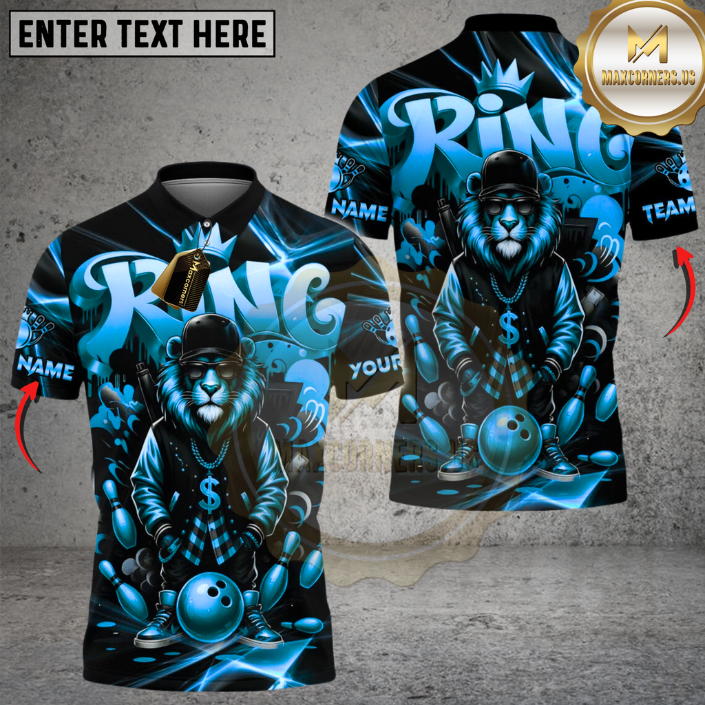 Maxcorners Bowling Lion King Gold Style Multicolor Customized Name, Team Name 3D Shirts