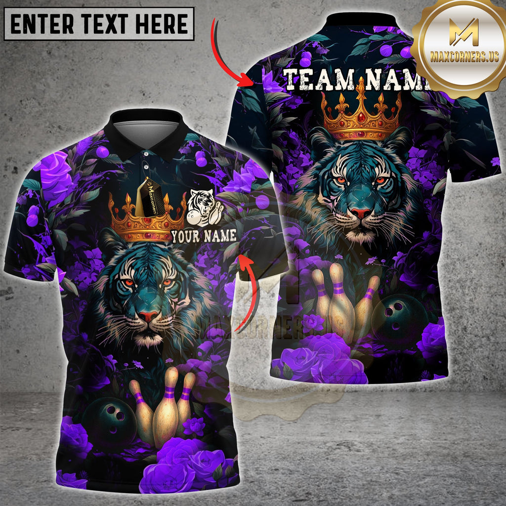 Maxcorners Bowling Tiger King Crown Red Roses Multioptions Personalized Name, Team Name Unisex 3D Shirt