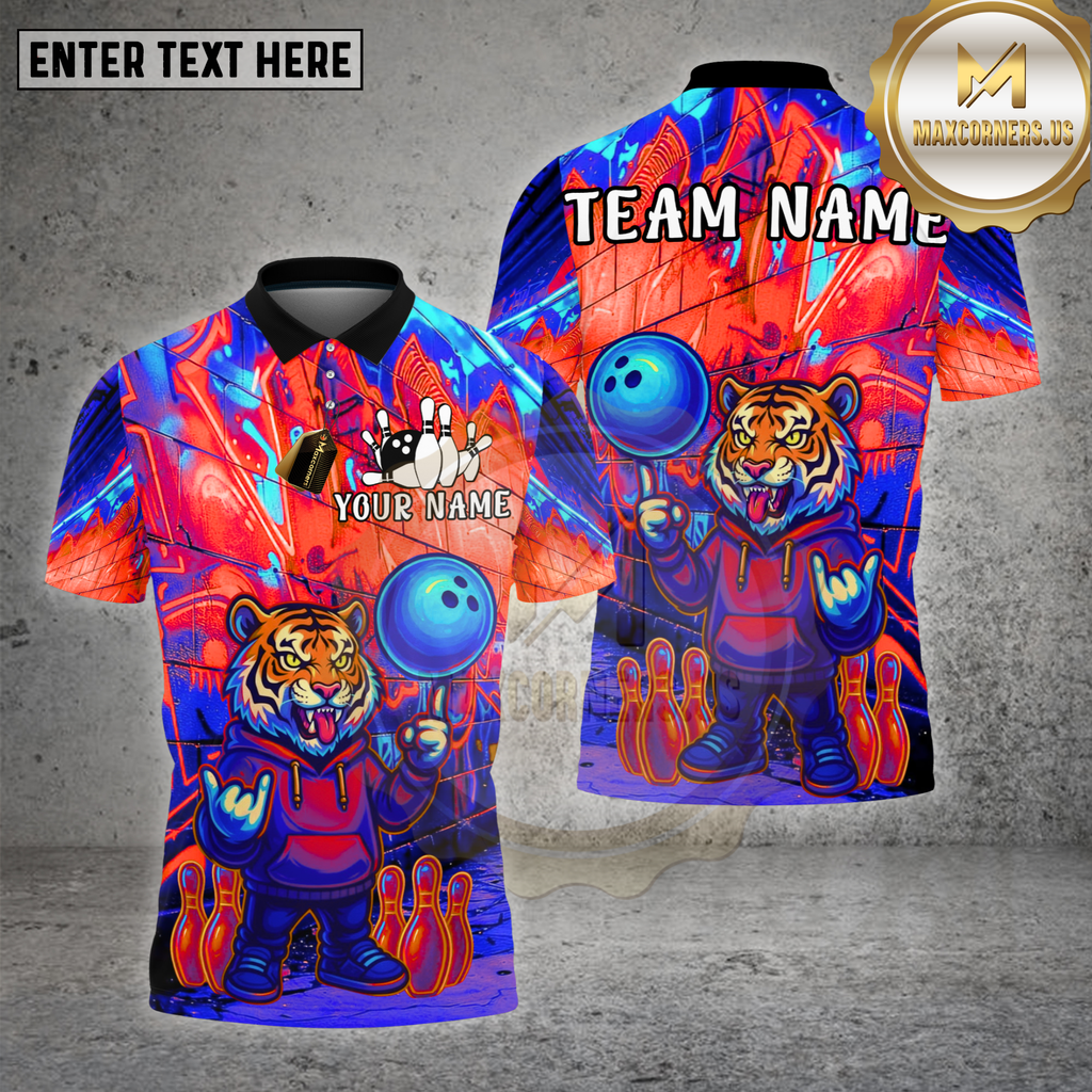 Maxcorners Bowling Tiger Neon Graffiti Street Glow Multioptions Personalized Name, Team Name Unisex 3D Shirt