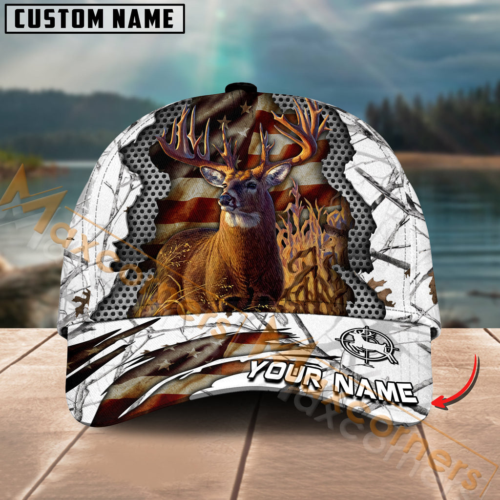 Maxcorners Deer Hunting American Flag Camo Multicolor Options Personalized Name 3D Cap