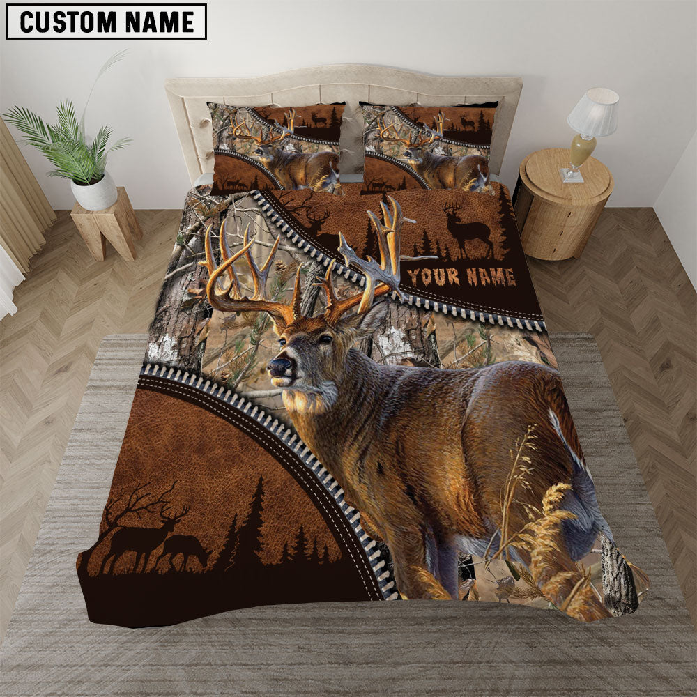Maxcorners Deer Hunting Grass Brown Camouflage Personalized Name Bedding Set 3D All Over Printed