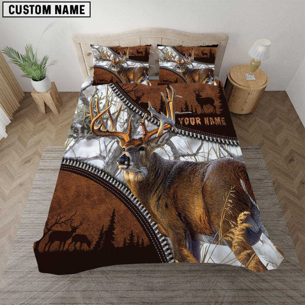 Maxcorners Deer Hunting White Camouflage Personalized Name Bedding Set 3D All Over Printed