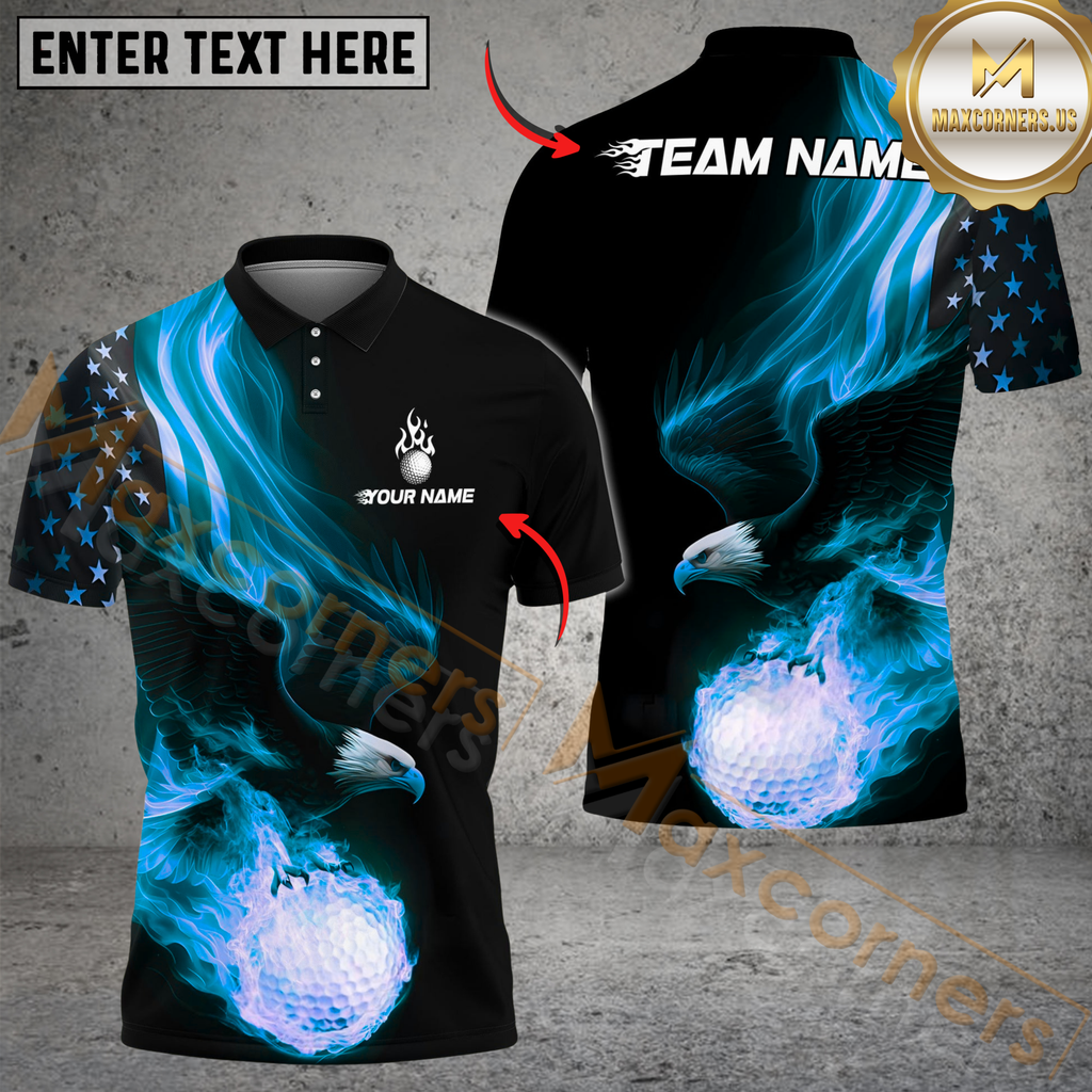 Maxcorners Fire Eagle Golf Polo Shirt, Customized Name & Team Name 3D Shirts (4 Colors)