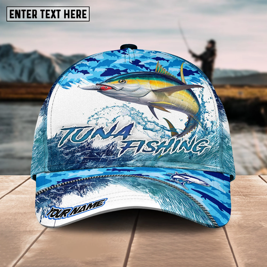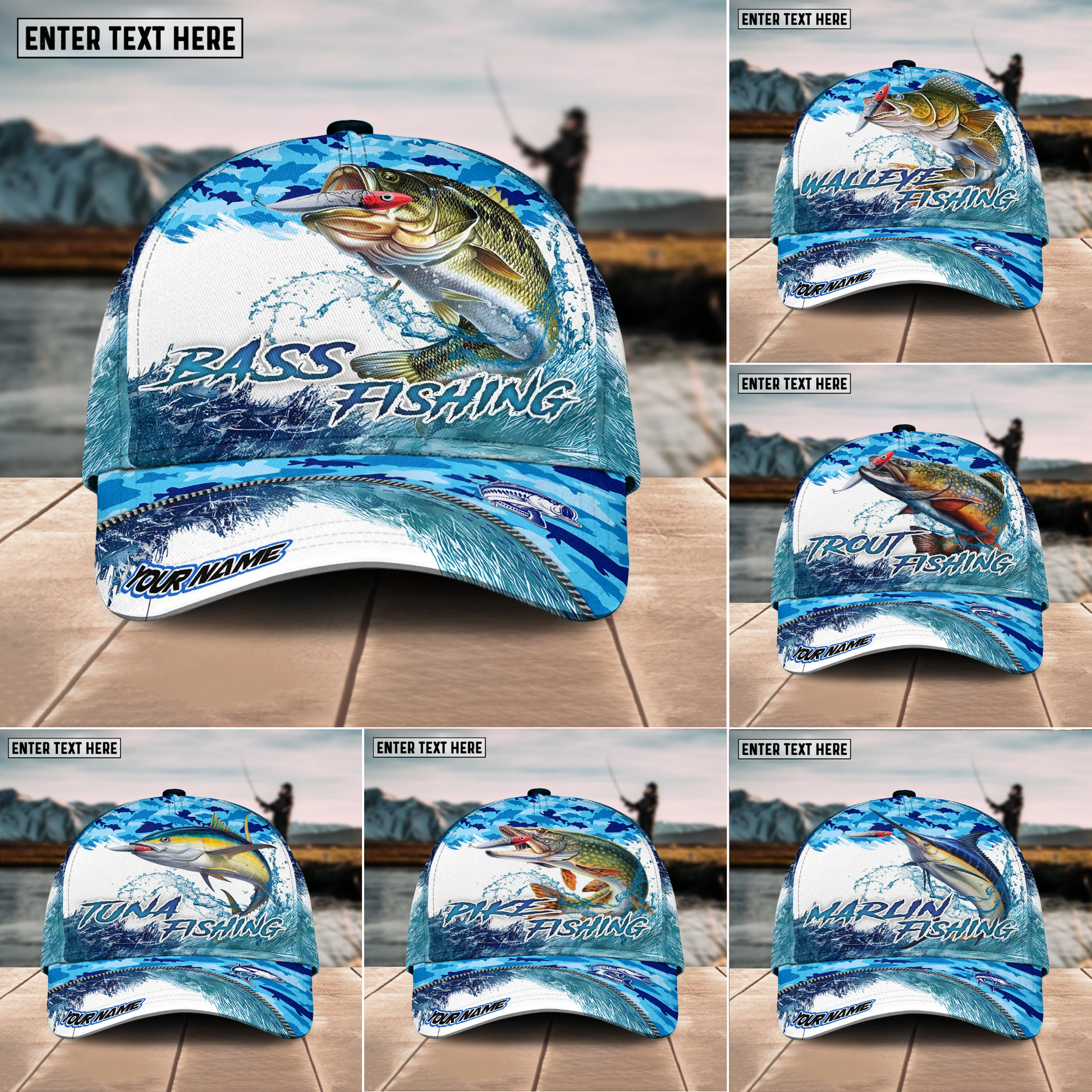 Maxcorners Fishing Blue Water Camo Pattern Sport Pattern Personalized Name 3D Cap (11 Breeds)