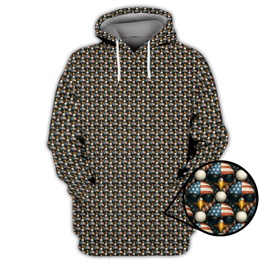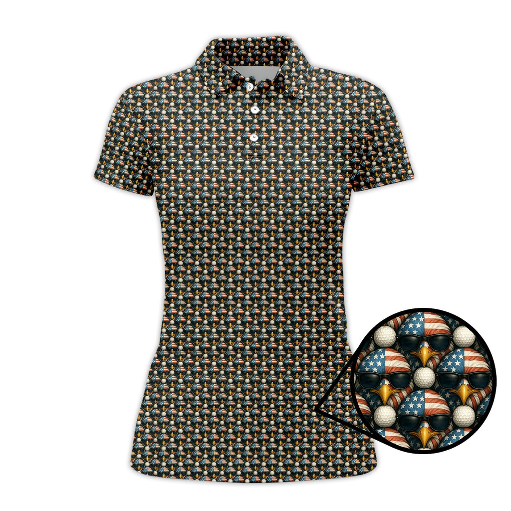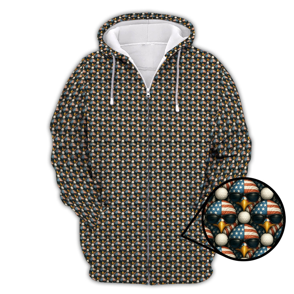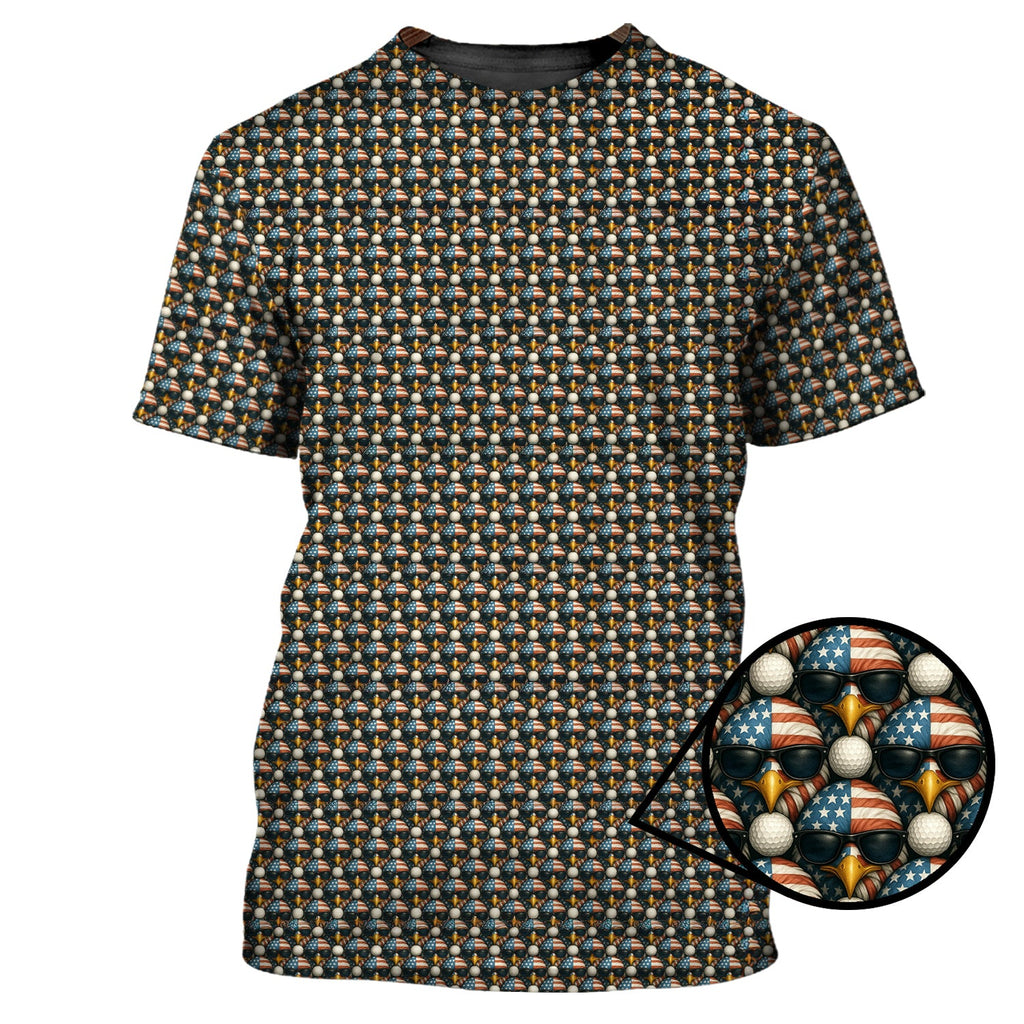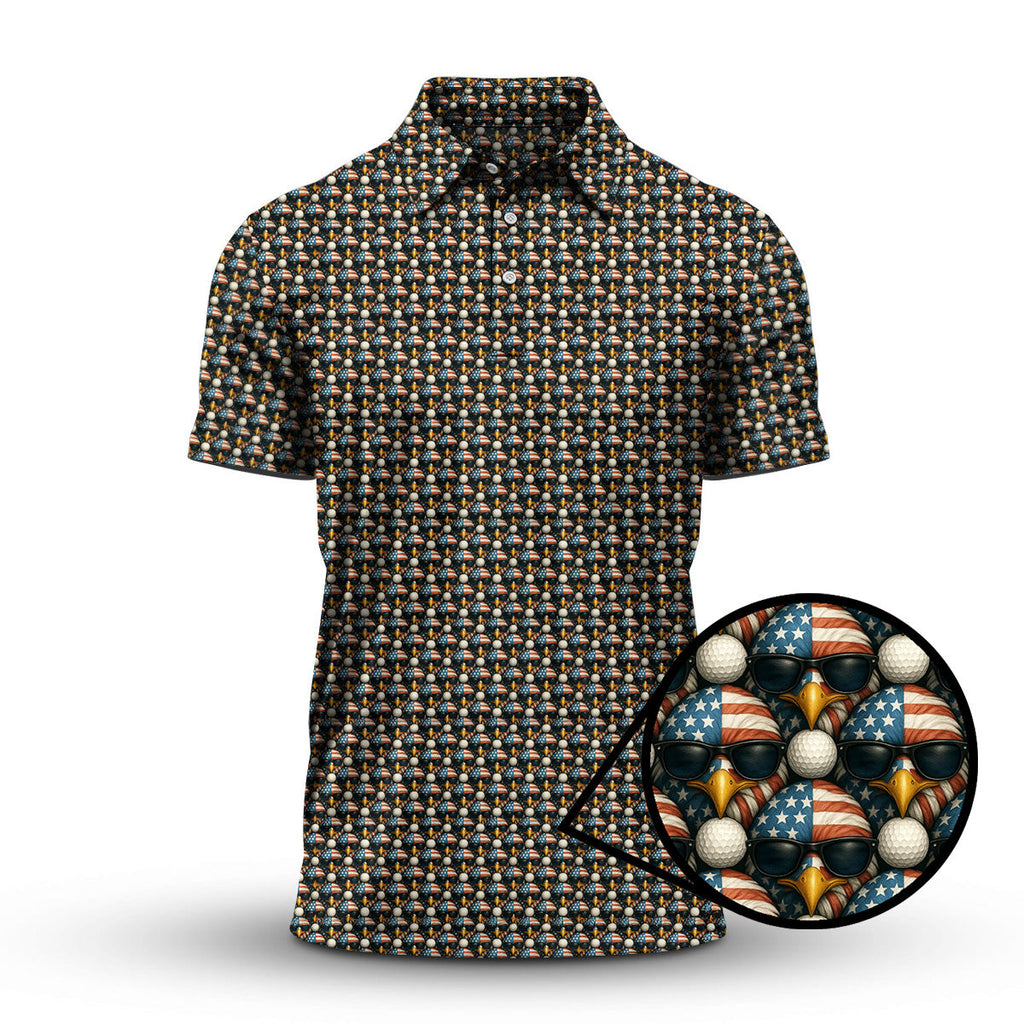 Maxcorners American Flag Eagle And Golf Ball Pattern Golf Polos, USA Golf Shirt, Crazy Golf Shirt For Men