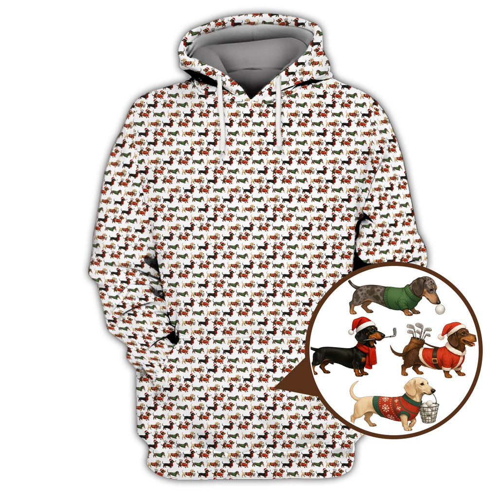 Maxcorners Dachshund Christmas Shirt For Golfer, Dog Pattern Golf Shirt, Funny Golf Shirt For Men