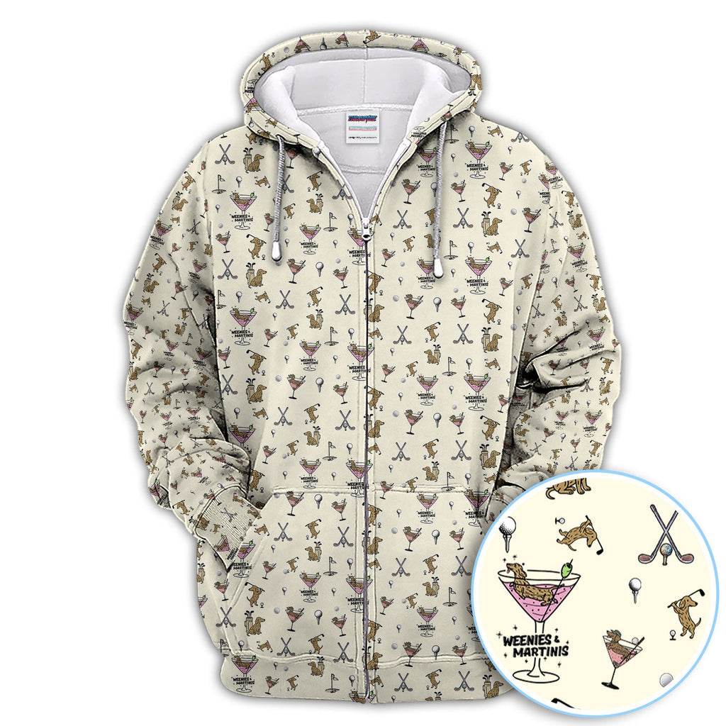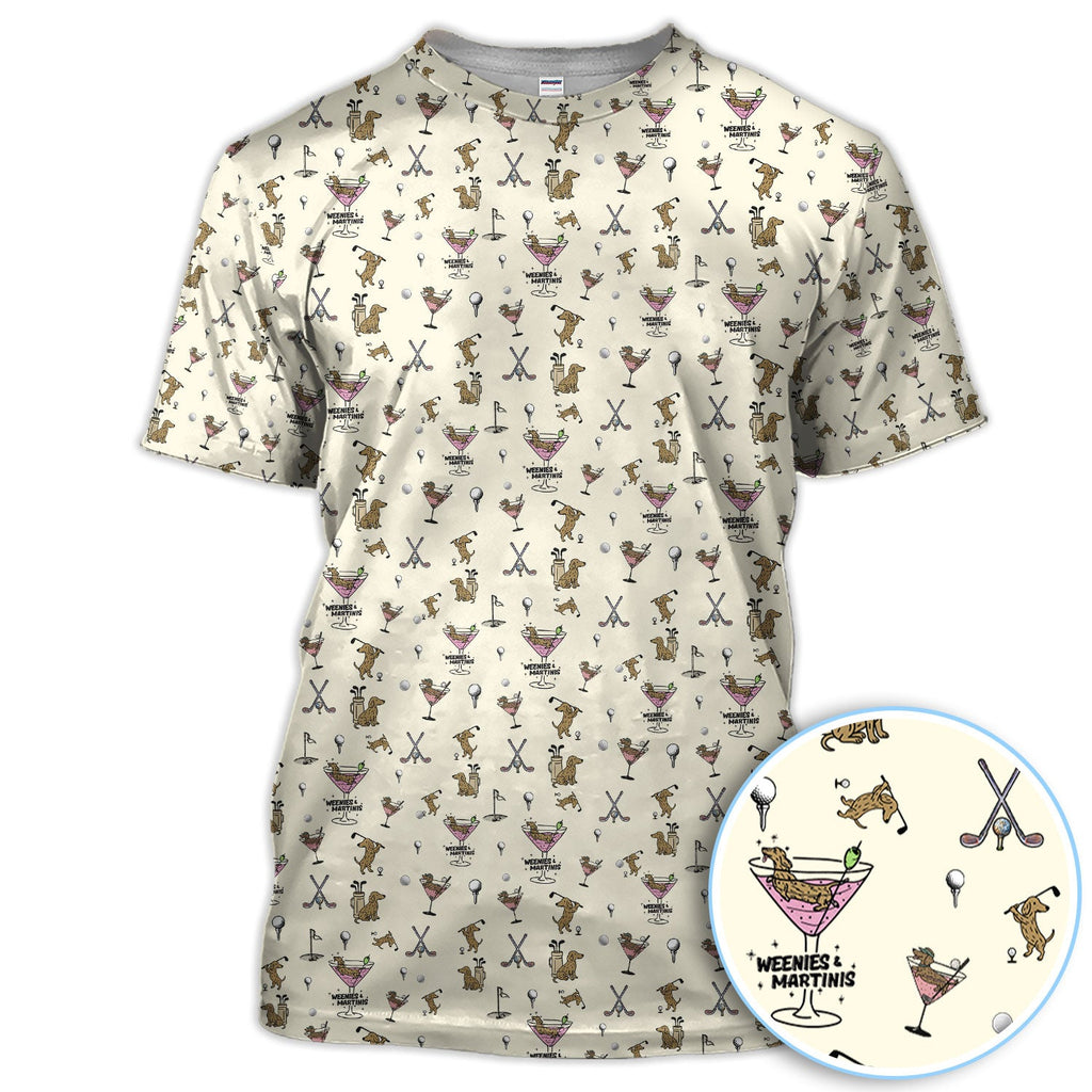 Maxcorners Funny Dachshund Golf Polos, Weenies Dog And Martinis Pattern Shirt For Men, Crazy Golf Shirt For Golfer