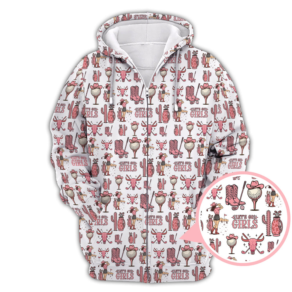Maxcorners Let’s Go Girls Golf Pattern Shirt, Western Cowgirl Golf Polos For Golfers, Funny Golf Shirts For Women's