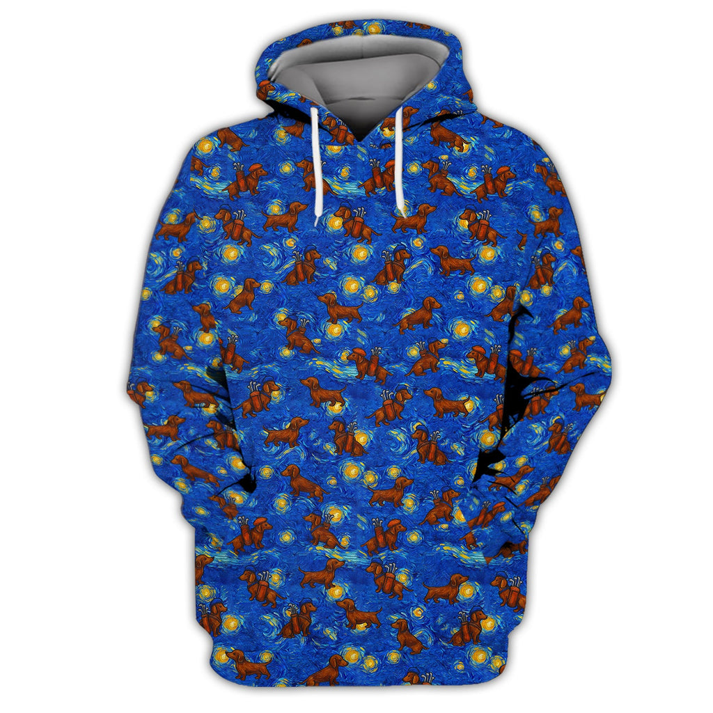 Maxcorners Pattern Golf Shirt For Golfer, Dachshund Golf Shirt, Starry Night Dachshund Golf Shirt For Men