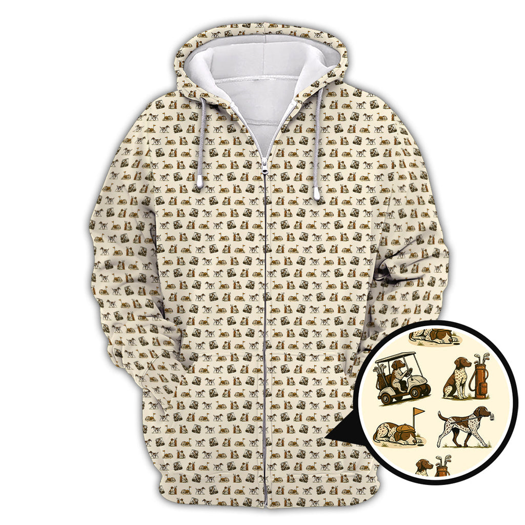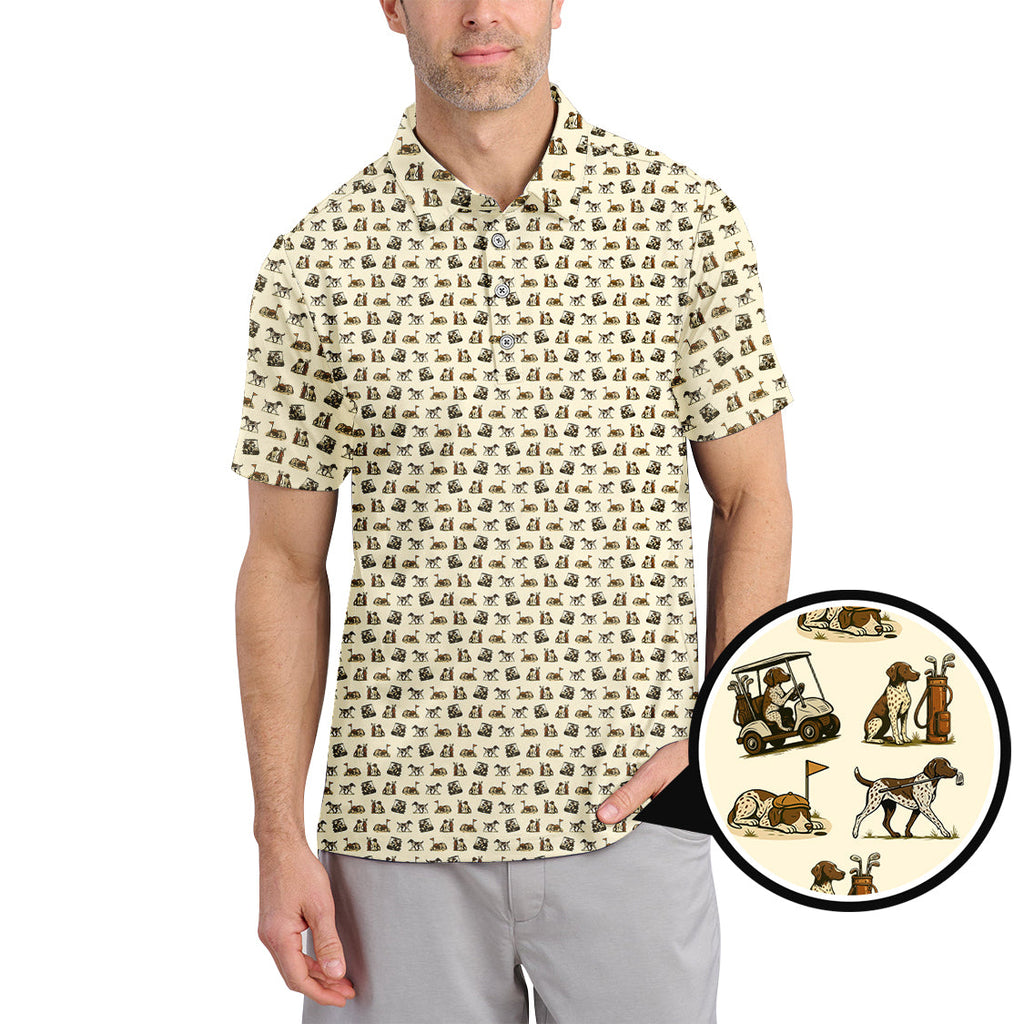 Maxcorners Pattern Golf Shirt, Pointer Golf Polos, Dog Golf Shirt For Men, Crazy Golf Shirt For Golfers
