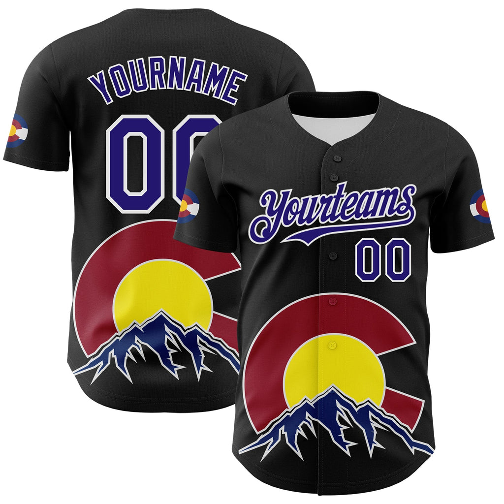 Maxcorners Custom Black Dark Purple Red Yellow Blue-White 3D Urban City Edition Sports Premium Baseball Jersey LM0210