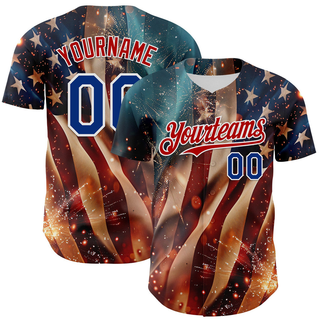 Maxcorners Custom Black USA Flag-White 3D Patriotic American Flag Premium Baseball Jersey LM0210