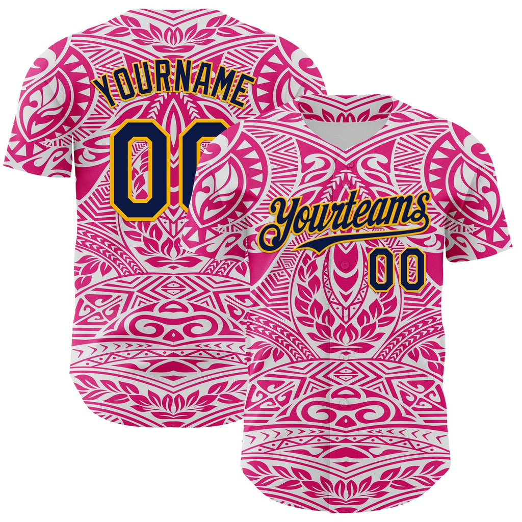 Maxcorners Custom Hot Pink Navy-Gold 3D Pattern Design Burner Costumes Ethnic Floral Premium Baseball Jersey LM0210