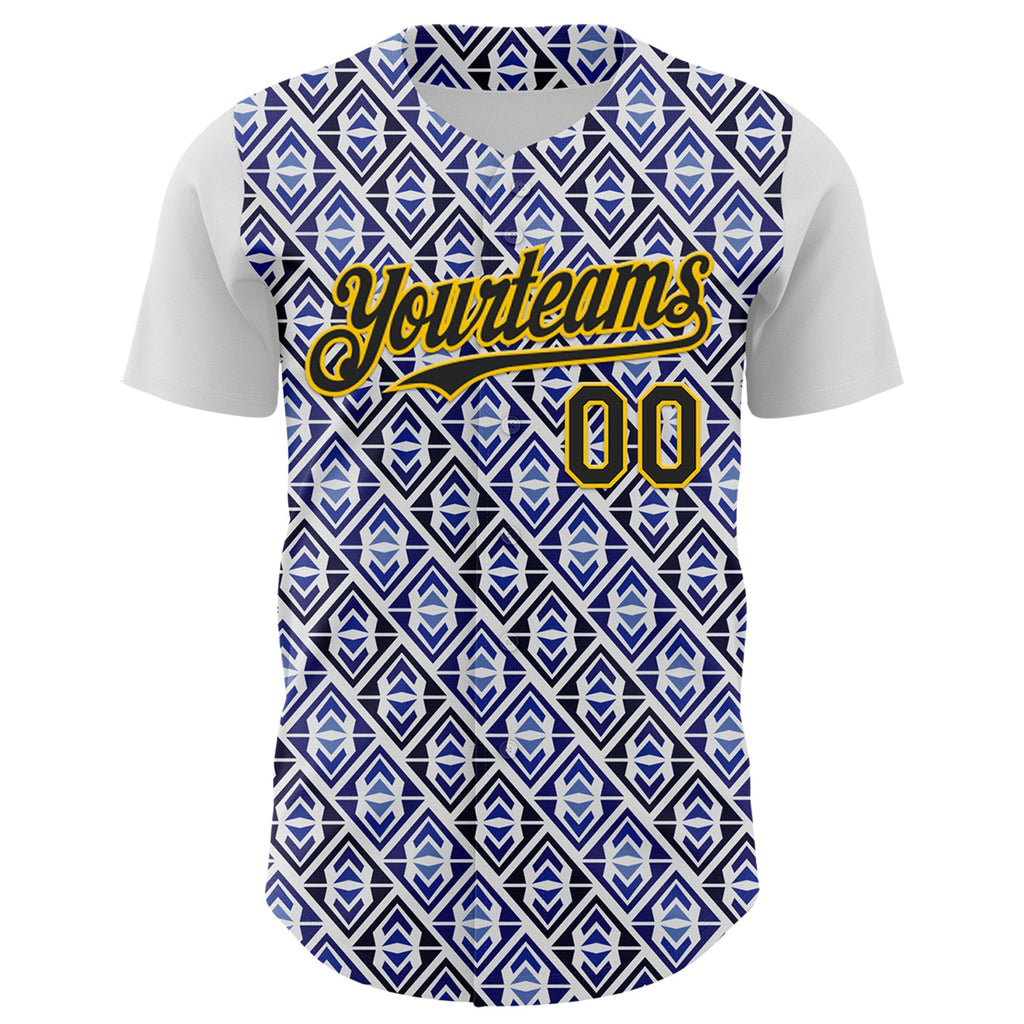 Maxcorners Custom White Black Royal-Gold 3D Pattern Design Rave Party Monogram Geometric Shape Premium Baseball Jersey LM0210