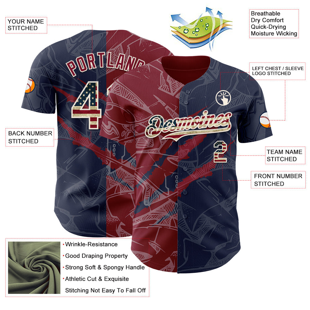Maxcorners Custom White Red-Royal Premium American Flag Fashion Baseball Jersey LM0210