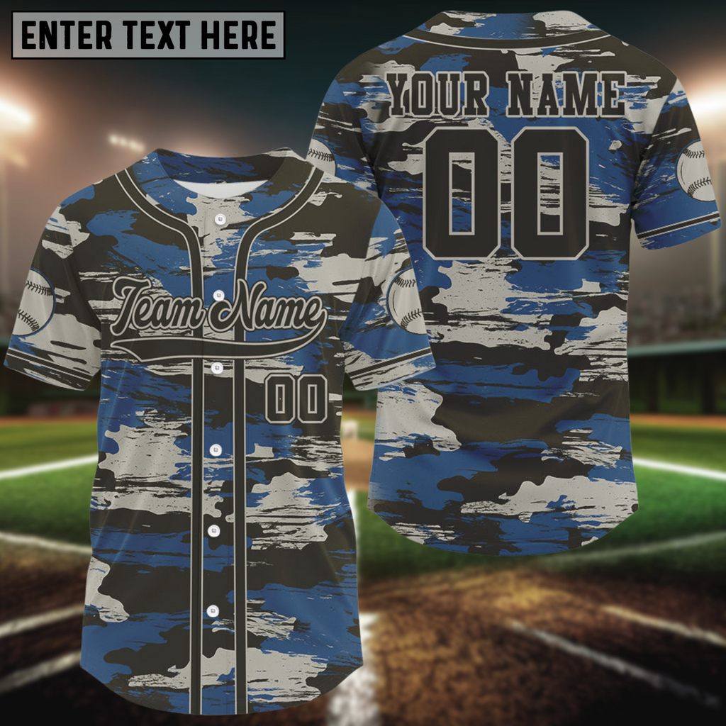 Maxcorners Blue Camouflage Baseball Jersey For Men Personalized Grunge Youth Baseball Shirt LM1809