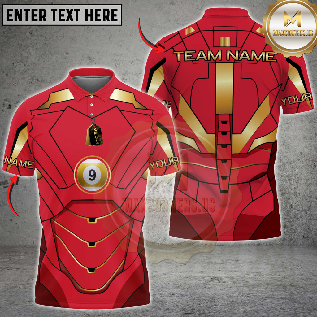 Maxcorners Billiards Iron Armor 9 Ball Red Gold Personalized Name 3D Unisex Shirt