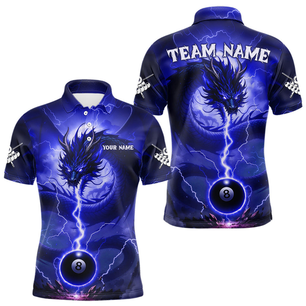 Maxcorners Blue 8 Ball Lightning Dragon Billiard Jersey For Men Custom Pool Team Shirt Polo & 1/4 Zip TU2310