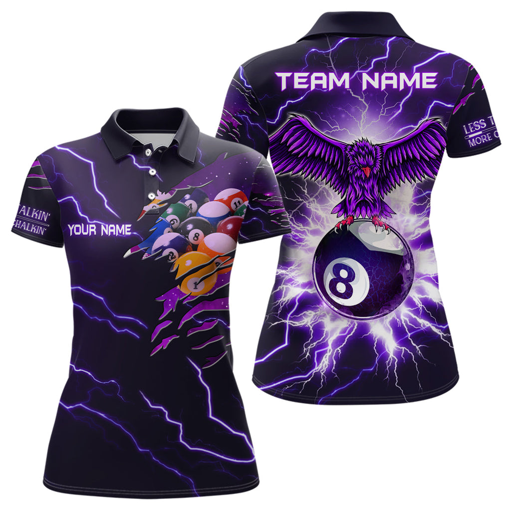 Maxcorners Personalized Thunder Pattern Eagle 8 Ball Billiards 3D Polo Shirts For Women