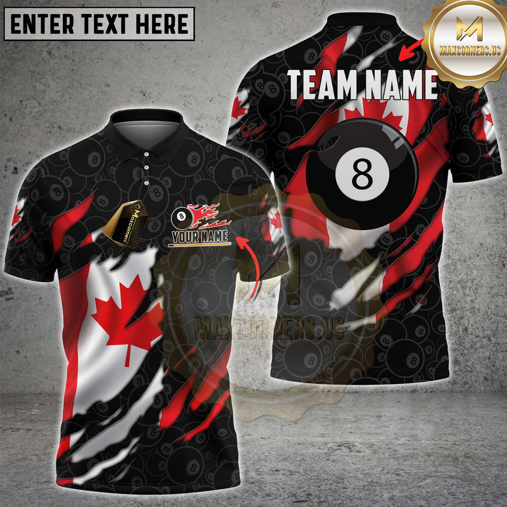 Maxcorners Billiards Canada Torn 8 Ball Flame Flag Personalized Name 3D Unisex Shirt
