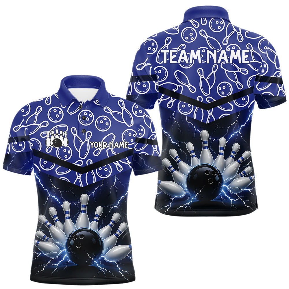 Maxcorners Blue camo Lightning Thunder Bowling Shirts For Men Custom Team Quarter Zip, Polo style bowling shirts MT2510
