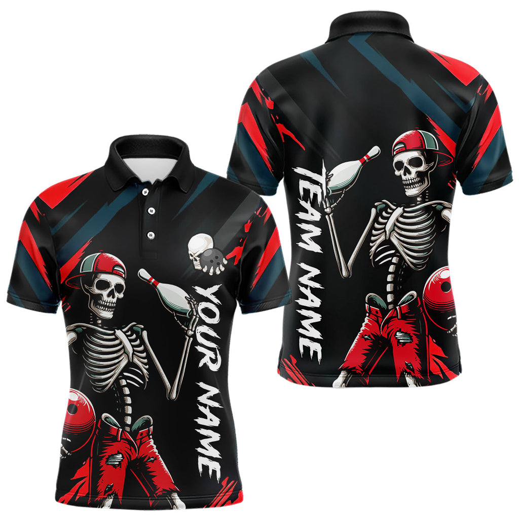 Maxcorners Custom Red Skull Bowling Team Shirt for Men Polo & 1/4 Zip Bowling League Jersey Bowling Unisex LM3010