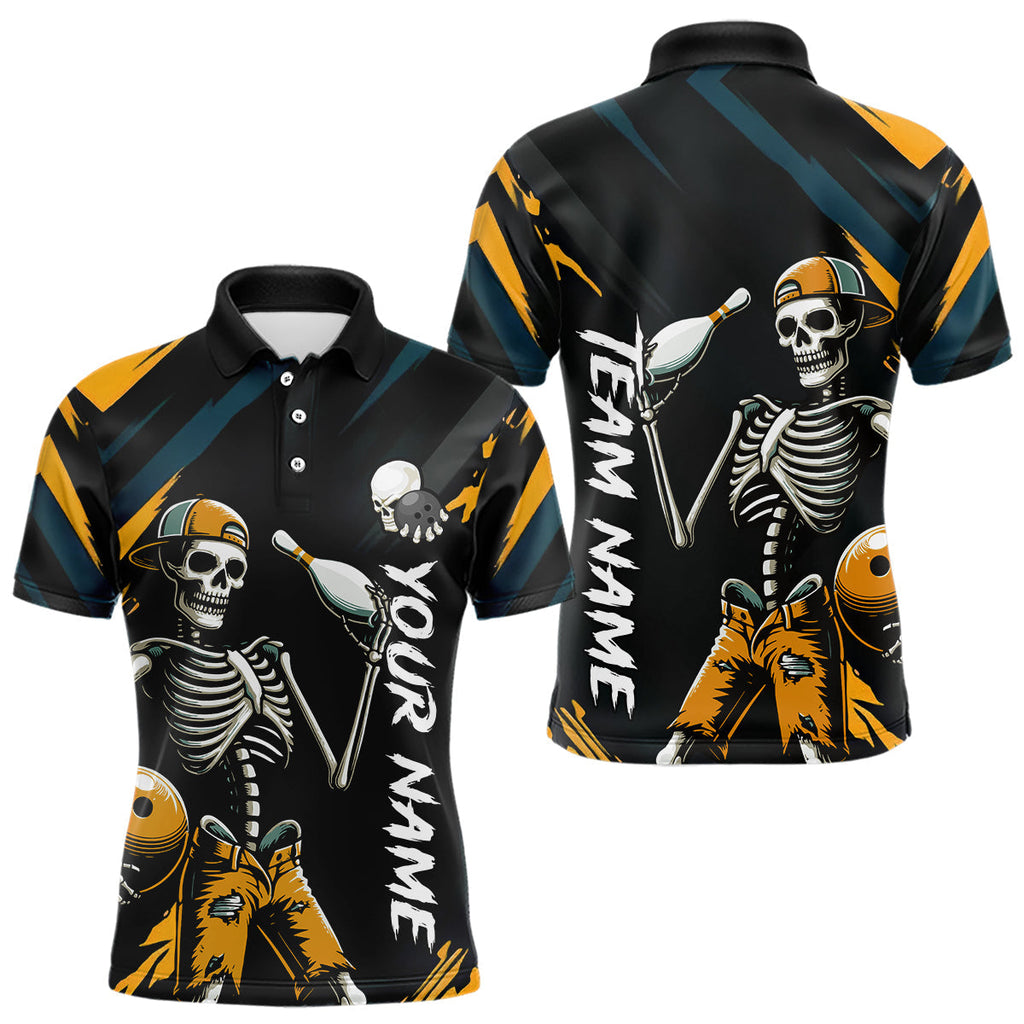 Maxcorners Custom Yellow Skull Bowling Team Shirt for Men Polo & 1/4 Zip Bowling League Jersey Bowling Unisex LM3010