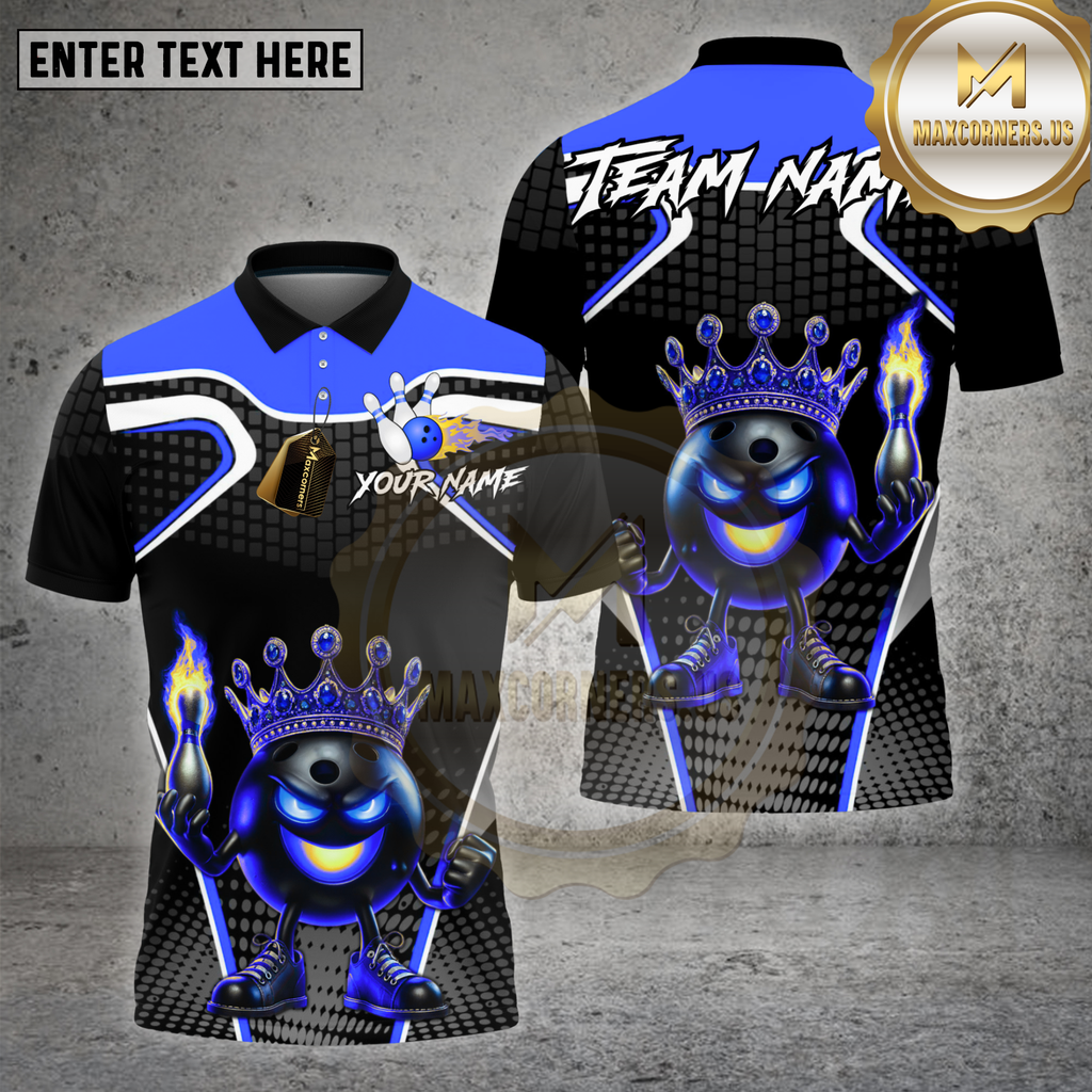 Maxcorners Bowling Shirt Black Crown Fire Royal Ball Multioptions Personalized Name, Team Name Unisex 3D Shirt