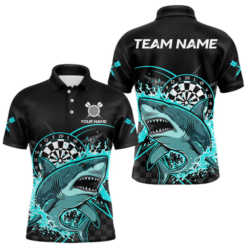 Maxcorners Black And Turquoise Funny Shark Dartboard Custom Men Darts Polo Shirt Dart Jerseys TU1011