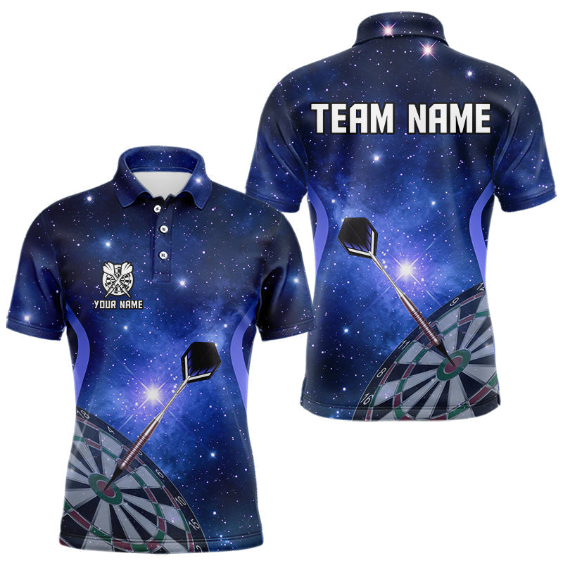 Maxcorners Blue galaxy space pattern Darts Polo, Quarter zip Shirts For Men Custom Team Darts Jersey Outfit LM1610