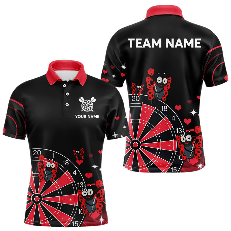 Maxcorners Custom Black And Red Butterflies Funny Dart Men Polo Shirt Dart Team Jerseys LM0910