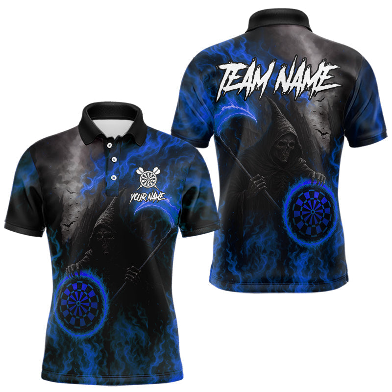 Maxcorners Custom Blue Flaming Dartboard Grim Reaper Dart Men Polo Shirt Dart Team Jerseys MT1110