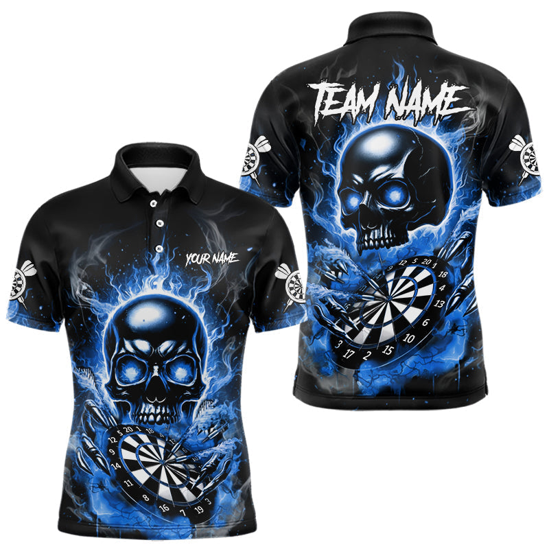 Maxcorners Custom Fire Flame Dartboard Lightning Blue Skull Dart Men Polo Jerseys Dart Team Shirt TU1410