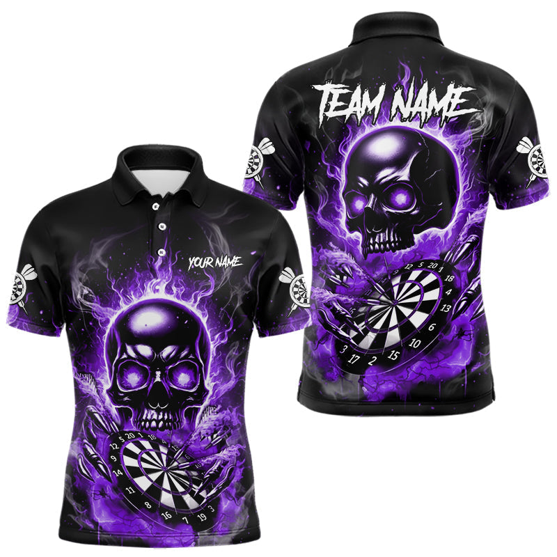 Maxcorners Custom Fire Flame Dartboard Lightning Purple Skull Dart Men Polo Jerseys Dart Team Shirt TU1410