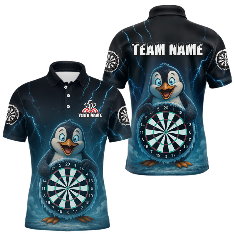 Maxcorners Custom Funny Penguin Icy Dartboard Dart Polo Shirt For Men Outfits Dart Jerseys LM0210