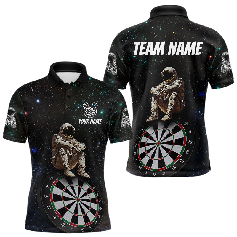 Maxcorners Custom Galaxy Astronaut Dartboard Funny Dart Polo Shirt For Men Outfit Dart Team Jerseys LM2509