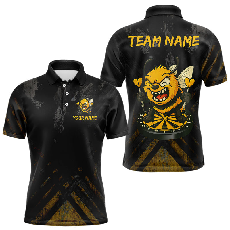 Maxcorners Custom Grunge Black Yellow Funny Bee Dart Polo Shirt For Men Dart Jerseys LM0210