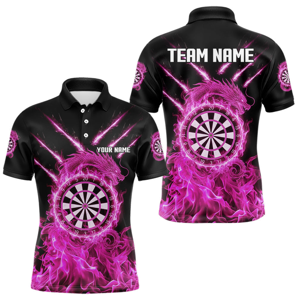 Maxcorners Custom Lightning Dragon Pink Flames Dartboard Dart Men Polo Jerseys Dart Team Shirt MT1810