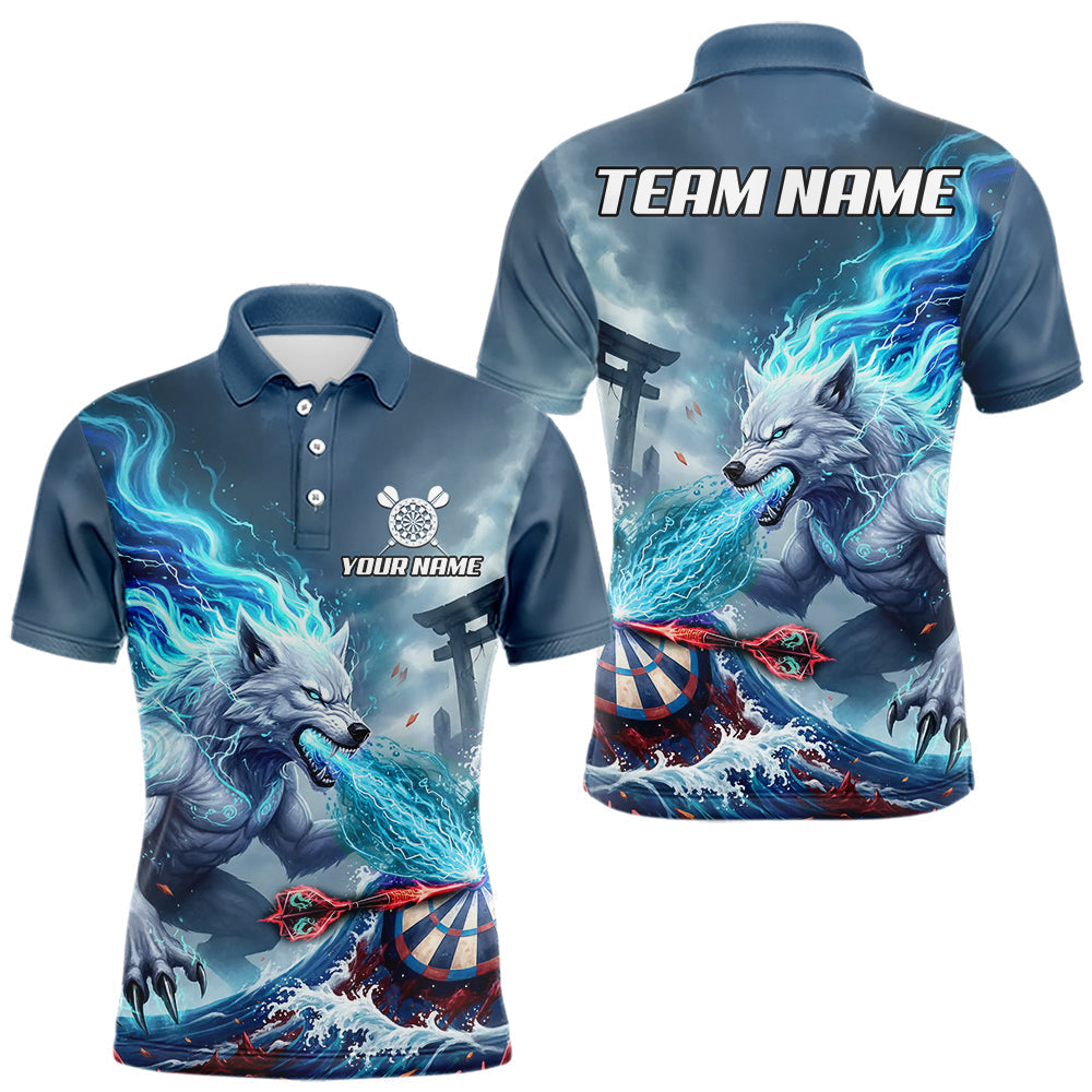 Maxcorners Custom Red & Blue Flames Wolf Dartboard Dart Men Polo Jerseys Outfits Dart Team Shirts LM3010