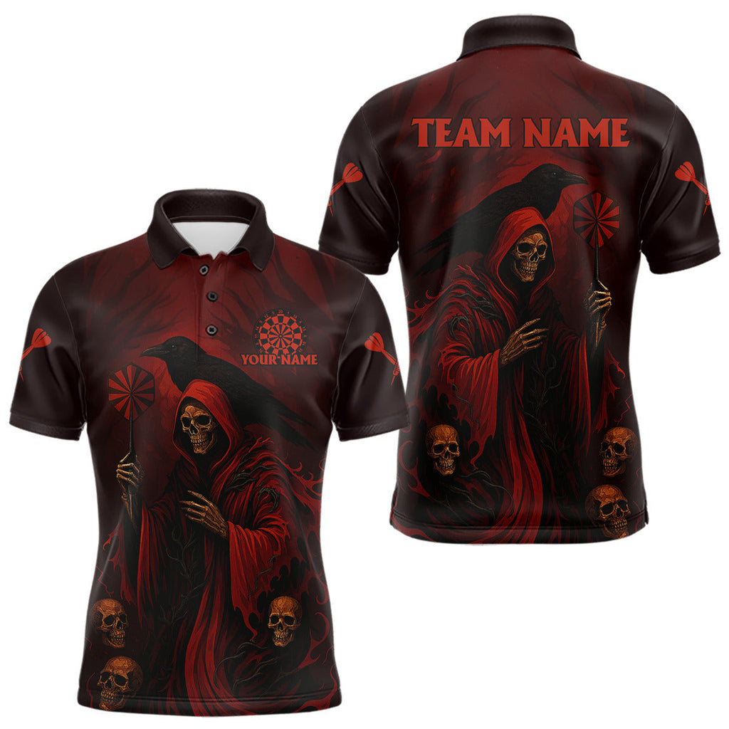 Maxcorners Custom Red Grim Heaper Grunge Skull Dart Arrow Dart Men Polo Shirt Dart Jerseys LM0210